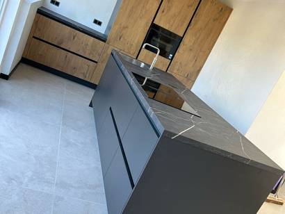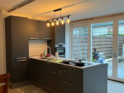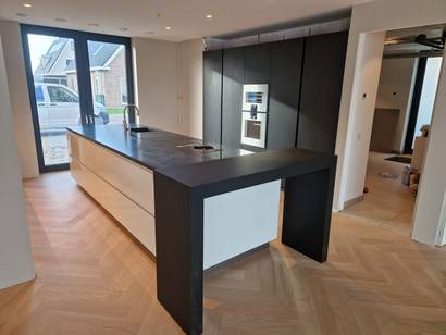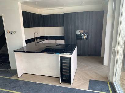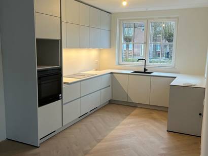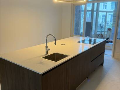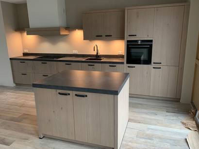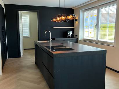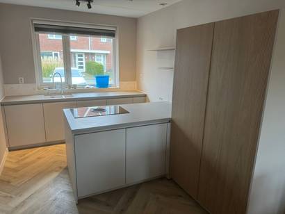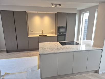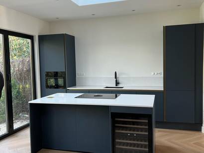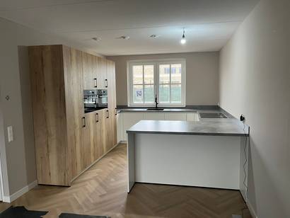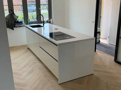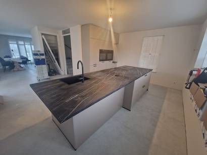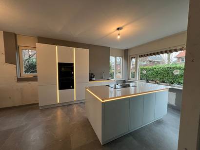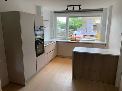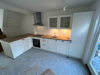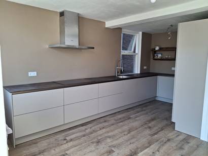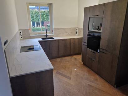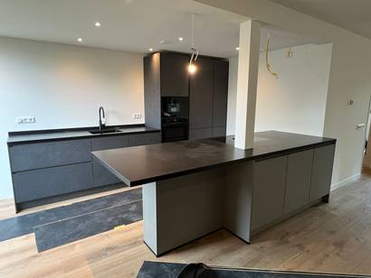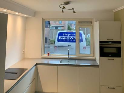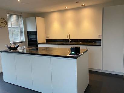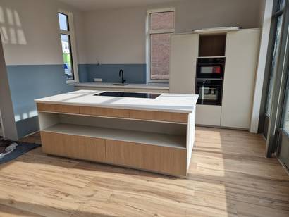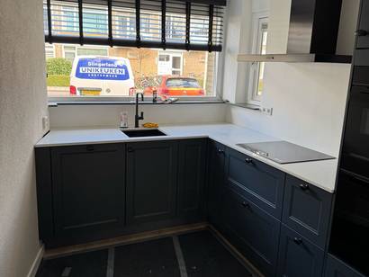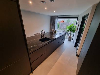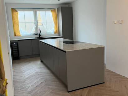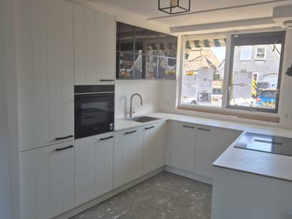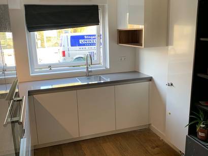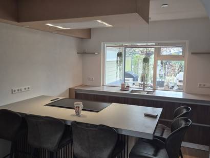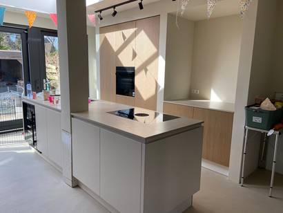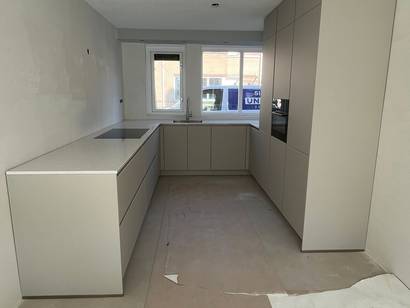 Hierdoor zijn alle werkzaamheden van verbouwing tot plaatsing van de keuken in onze handen.
