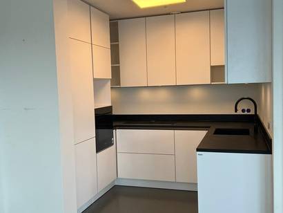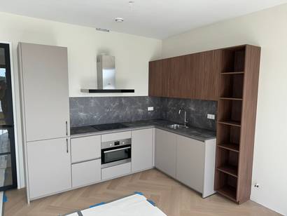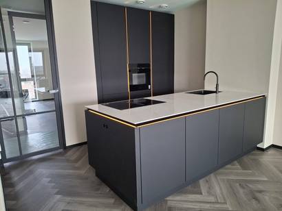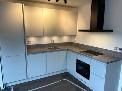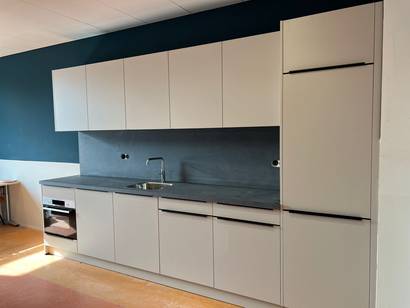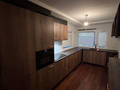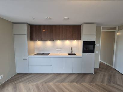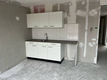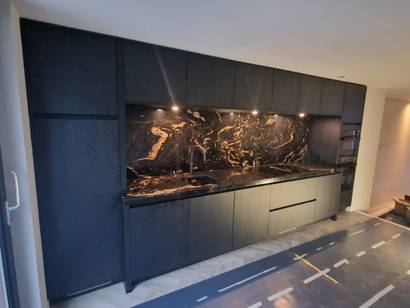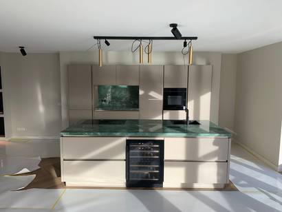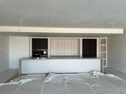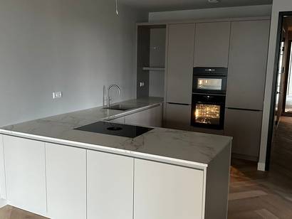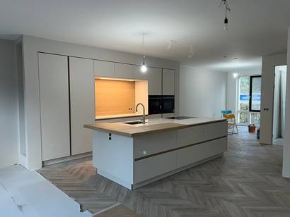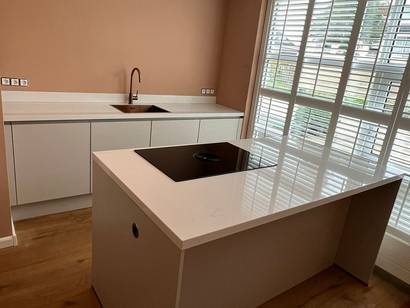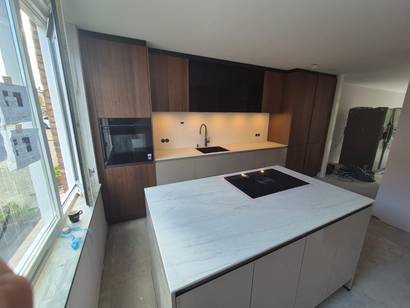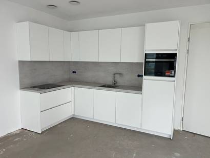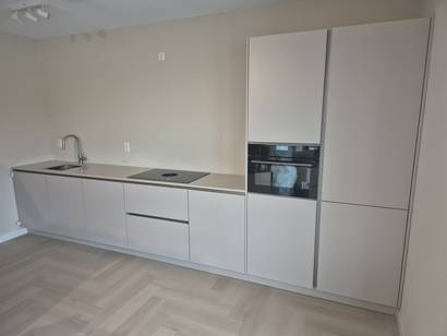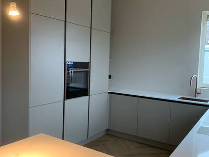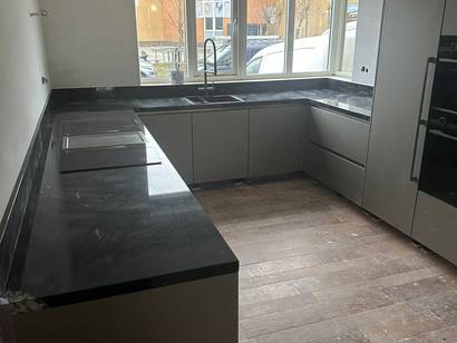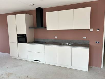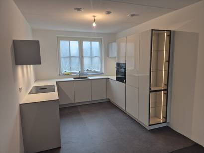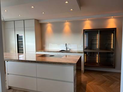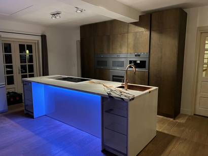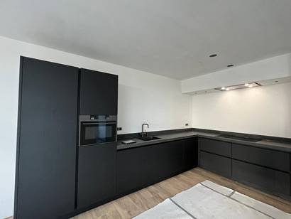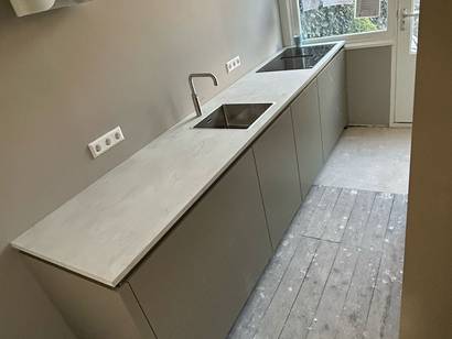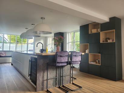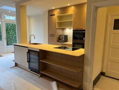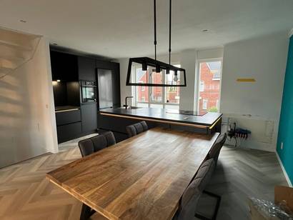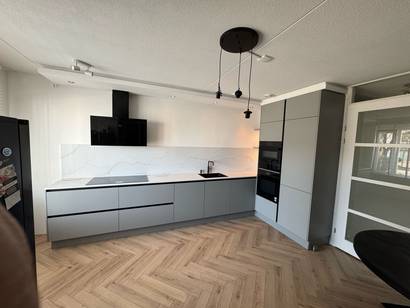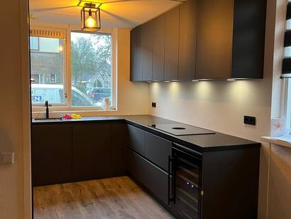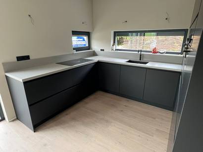 Hierdoor zijn alle werkzaamheden van verbouwing tot plaatsing van de keuken in onze handen.
