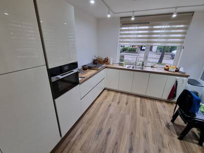 In Hoofddorp is in opdracht van de klant een complete beneden-verdieping verbouwd. Hier hebben wij: